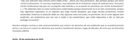 La Federación ecuatoriana de organizaciones LGBT+ con presencia en el territorio ecuatoriano con cerca de 68 colectivos, rechaza enfáticamente las desatinadas declaraciones del ex presidente de la república Lucio Gutiérrez. […]