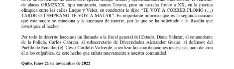 BOLETÍN DE PRENSAContinúan las extorsiones y amenazas en la Pista (lugar de ejercicio del trabajo sexual) de Guayaquil
