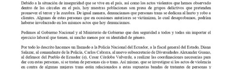 BOLETÍN DE PRENSA Red de tratantes de personas extorsiona y amenaza a mujeres trans que ejercen el trabajo sexual El Centro Psico Trans de Quito de la Asociación Silueta X, […]