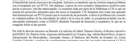 BOLETÍN DE PRENSA Paciente renal HSH afirma estar siendo discriminado por el Hospital Luis Vernaza y el INDOT por ser PVVS