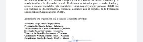 «Ponemos en total conocimiento a las Autoridades Competentes de Cada Parroquia, Cantón de la Provincia de los Ríos. Para llevar un trabajo mancomunado. La “Red Provincial LGBTI los Rios” es […]