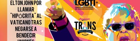 Aplausos a Elton John por llamar «Hipócrita» al vaticano trans negarse a bendecir uniones homosexuales