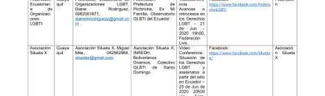 • Federación ecuatoriana de organizaciones LGBTI, LGBT, LGBTIQ+, GLBTI, diverso (lesbianas, gays, bisexuales, transgeneros, intersex, queer, género no conforme)