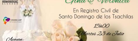 Invitación al Matrimonio de: Gina & Veronica En el Registro civil de Santo Domingo de los Tsachilas Martes 23 de Julio 15h00 Apoyan: Colectivo GLBTI de Santo Dimingo Cámara LGBT […]