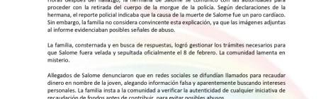 Salome Piguave encontrada sin vida en circunstancias aún no esclarecidas en Guayaquil, Ecuador.